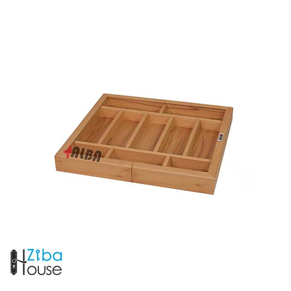 طراحی ریگلاژی آن، امکان تنظیم اندازه بر اساس فضای کابینت را میدهد و دسترسی سریع به قاشق، چنگال و کارد را آسان میکند.